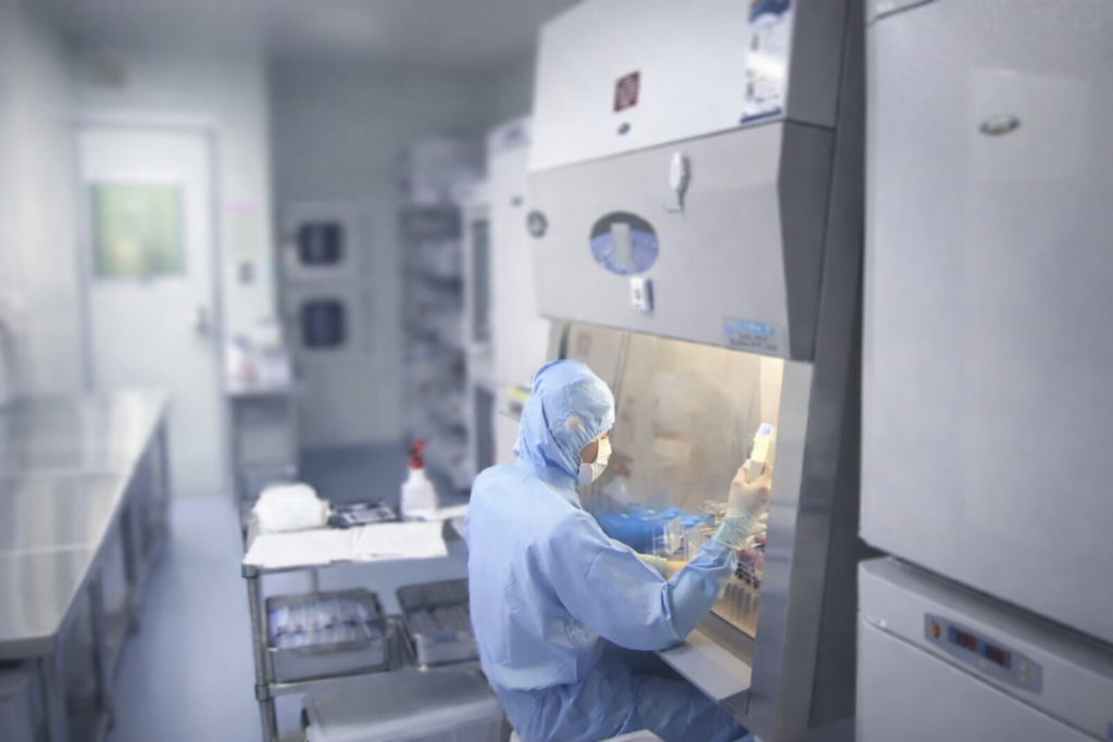 培養環境(温度・CO₂)を維持するための非常用電源・蓄電池設計。
